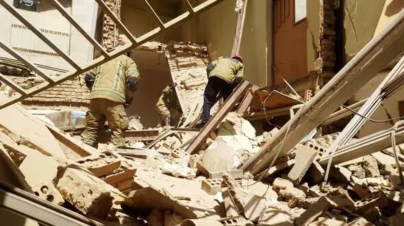 ریزش ناگهانی و هولناک یک مجتمع مسکونی چندطبقه در نجف؛ طی این حادثه چندین نفر زخمی شدند./مهر