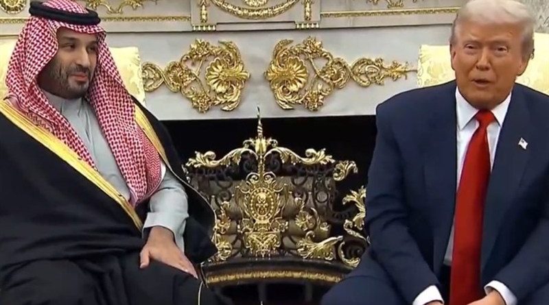 بنسلمان در این دیدار تأکید کرد که ترامپ کار بزرگی برای ایجاد صلح جهانی انجام داده است و ابراز امیدواری کرد که عربستان و آمریکا بتوانند «در سایه صلح جهانی آیندهای مشترک» بسازند.