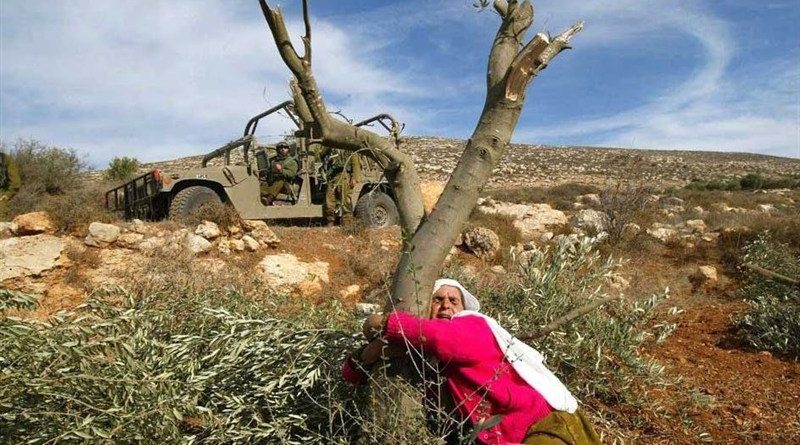 هر تیری که قلب یک مرد یا زن یا کودک فلسطینی را نشانه میگرفت، یک درخت زیتون هم از ریشه کنده میشد و هر خانواده فلسطینی که با زور و تهدید از خاک و خانهاش کوچانده میشد، باغ و درختان زیتونش نیز به آتش کشیده و ریشهکن میشدند و خانه و باغش تصاحب.