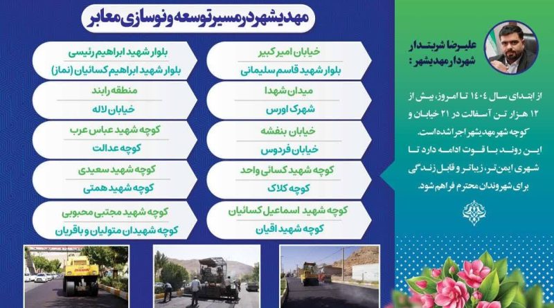 گفتنی است: با وجود چالش‌های اجرایی، استمرار این اقدامات عمرانی نشان‌دهنده‌ی رویکردی هدفمند در مدیریت شهری مهدیشهر است؛ رویکردی که با تکیه بر برنامه‌ریزی، نظارت مستمر و مشارکت شهروندان، مسیر توسعه‌ای پایدار و متوازن را دنبال می‌کند.