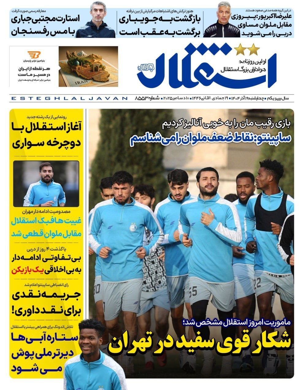 صفحه اول مطبوعات چهارشنبه 18آذر/بازطراحی امر ملی