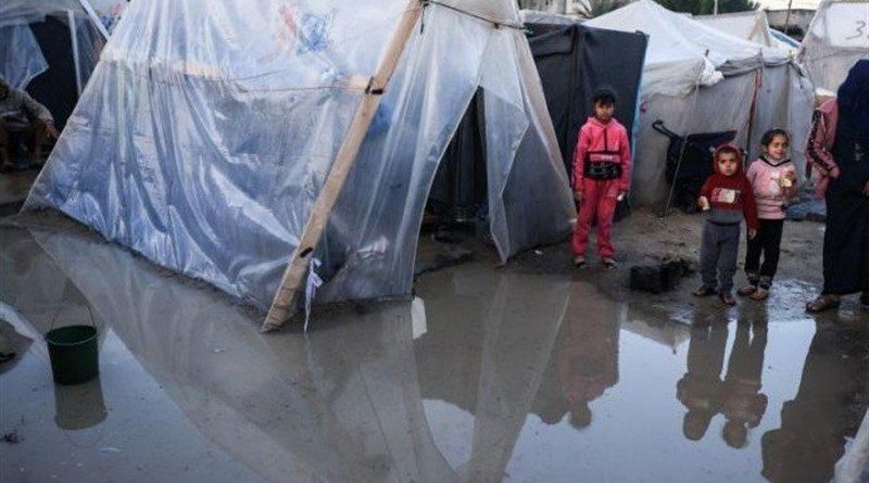 تصاویری که از شهر غزه می‌رسد، آوارگان را در حالی که چادرها روی سرشان ویران شده و در میان گِل و لای غرق هستند، نشان می‌دهد و زنان و کودکان را می‌بینیم که بدون سرپناه در میان سرما و زیر باران ایستاده‌اند، پتوها و تشک‌ها کاملاً خیس هستند و هیچ وسیله گرمایشی و هیچ عایقی وجود ندارد.
