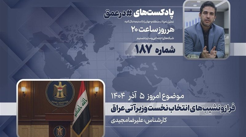 گروه بینالملل خبرگزاری تسنیم ـ یکصدوهشتادوهفتمین شماره از پادکست «در عمق» که به بررسی مهمترین روندها، تحولات و همچنین شخصیتها در غرب آسیا میپردازد، روز دوشنبه 4 آذر 1404 ضبط و منتشر شد. «علیرضا مجیدی»، کارشناس مسائل غرب آسیا به بررسی تحولات پساانتخاباتی در عراق برای انتخاب نخست وزیر جدید میپردازد.