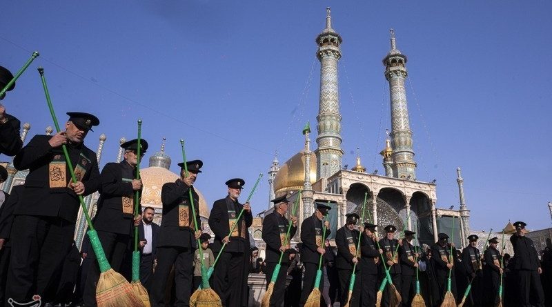 به گزارش خبرگزاری تسنیم از قم، جمعی از خادمان بارگاه منور امام رضا(ع) با حضور در حرم مطهر بانوی کرامت صبح امروز پس از خطبهخوانی، در آیین سنتی جاروکشی گرداگرد حوض صحن امام رضا(ع) مشارکت کردند.