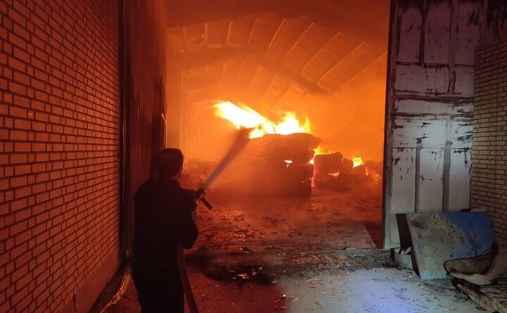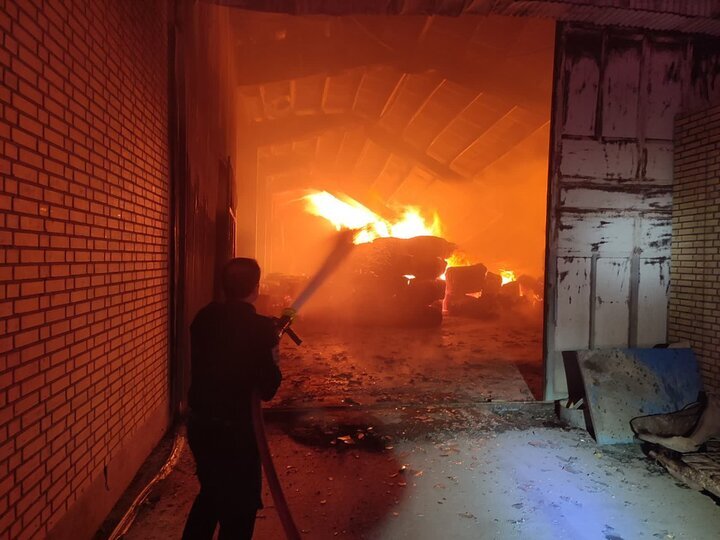 ببینید | حریق انبار چرم و کفش در شهرک صنعتی کلات