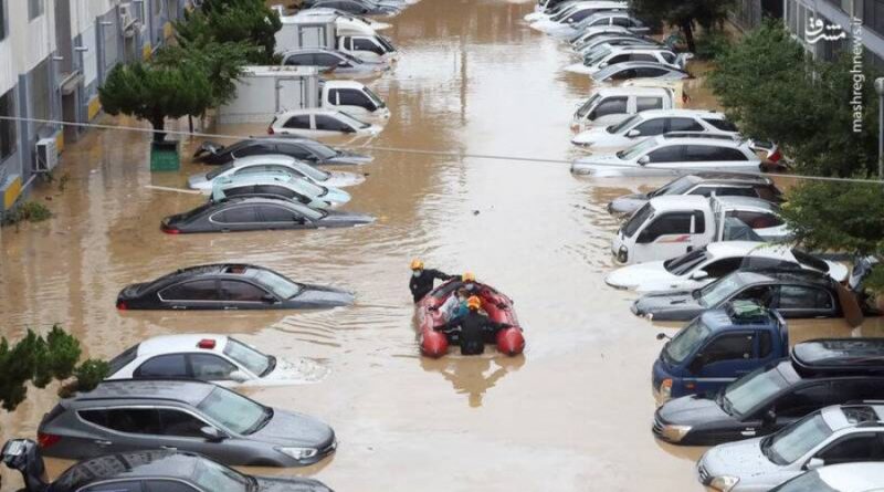 در پی بارش شدید باران و سیلابی شدن خیابان ها در نروژ، خودرو ها تا سقف زیر آب دفن شدند./ایرانیک