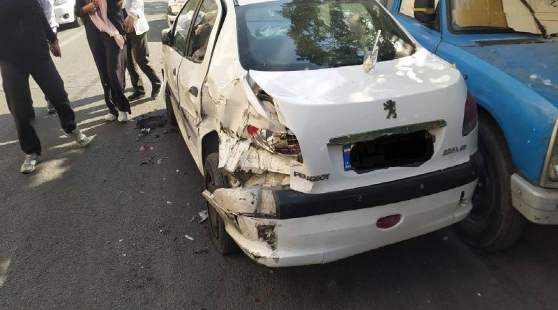 برخورد خاور با ۱۵ خودرو در بلوار سیمون بولیوار تهران