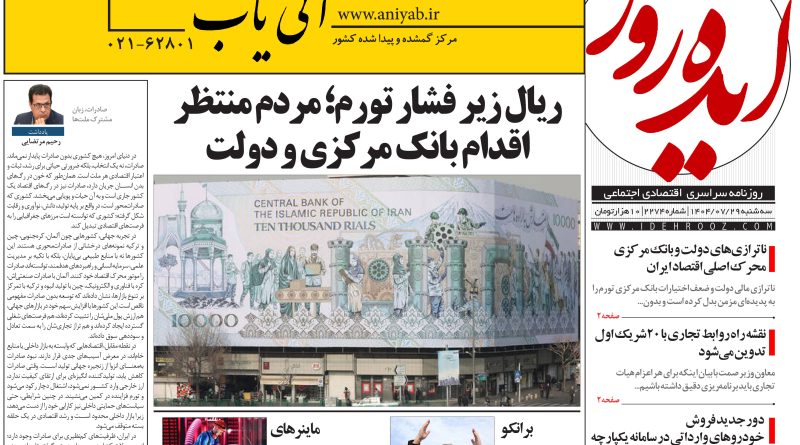 نسخه چاپی روزنامه ایده روز در تاریخ 29 مهر 1404