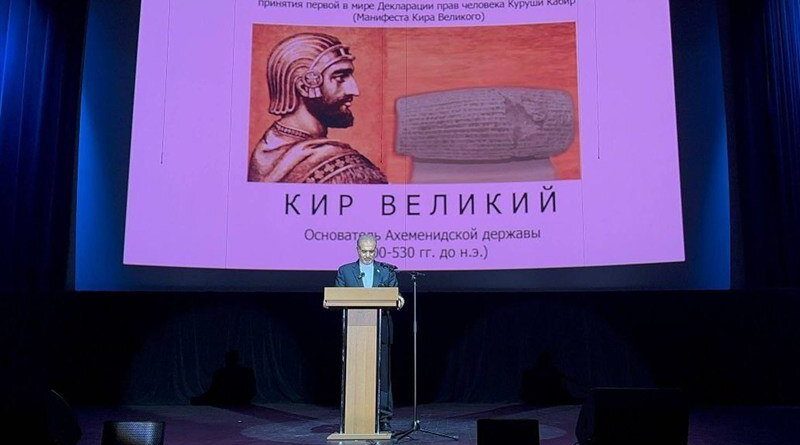 به گزارش همشهریآنلاین، مراسم گرامیداشت دو هزار و ۵۵۰ امین سالگرد اعلام اولین منشور حقوق بشر جهان امروز (سه شنبه ۲۱ مهر) با حضور کاظم جلالی سفیر جمهوری اسلامی ایران در روسیه، ولادیمیر سرگیویچ مالیشف رییس دانشگاه دولتی سینمای روسیه، دولتشاه گلمحمدزاده، سفیر تاجیکستان در مسکو، باتیرجان اسداف سفیر جمهوری ازبکستان در مسکو، سفیر جمهوری قرقیزستان و جمعی از استادان، دانشجویان دانشگاه دولتی سینمای روسیه در تالار اجتماعات این دانشگاه برگزار شد.