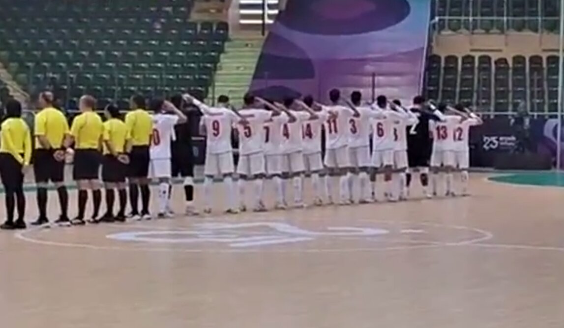 به گزارش همشهری آنلاین به نقل از دانشجو، بازیکنان تیم ملی فوتسال ایران پیش از آغاز دیدار با تاجیکستان در رقابتهای بازیهای همبستگی کشورهای اسلامی، هنگام پخش سرود ملی کشورمان، سلام نظامی دادند.