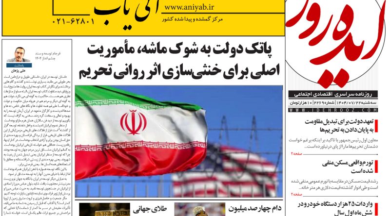 دانلود نسخه چاپی روزنامه ایده روز 22 مهرماه https://eidehrooz.com/wp-content/uploads/2025/10/22-مهر.pdf