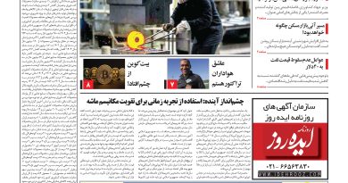 روزنامه چاپی نسخه چاپی روزنامه ایده روز – 18 آبان ماه 1400 18 آبان 14007 مرداد 1402 eidehrooz 0 دیدگاه دانلود روزنامه 18 آبان ماه