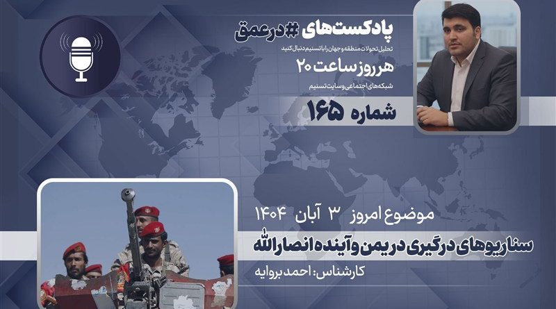گروه بینالملل خبرگزاری تسنیم ـ یکصدوشصتوپنجمین شماره از پادکست «در عمق» که به بررسی مهمترین روندها، تحولات و همچنین شخصیتها در غرب آسیا میپردازد، روز شنبه 3 آبان 1404 ضبط و منتشر شد، در این اپیزود «احمد بروایه»، کارشناس مسائل خاورمیانه و شمال آفریقا، تحولات یمن را پیگیری میکند.