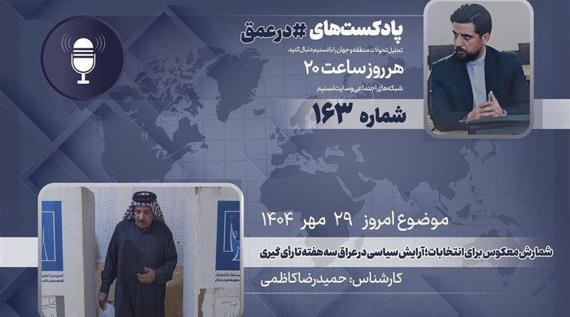 گروه بینالملل خبرگزاری تسنیم ـ یکصدوشصتوسومین شماره از پادکست «در عمق» که به بررسی مهمترین روندها، تحولات و همچنین شخصیتها در غرب آسیا میپردازد، روز سهشنبه 29 مهر 1404 ضبط و منتشر شد، در این اپیزود «حمیدرضا کاظمی»، کارشناس مسائل خلیج فارس و خاورمیانه، تحولات انتخابات عراق را بررسی کرده است.